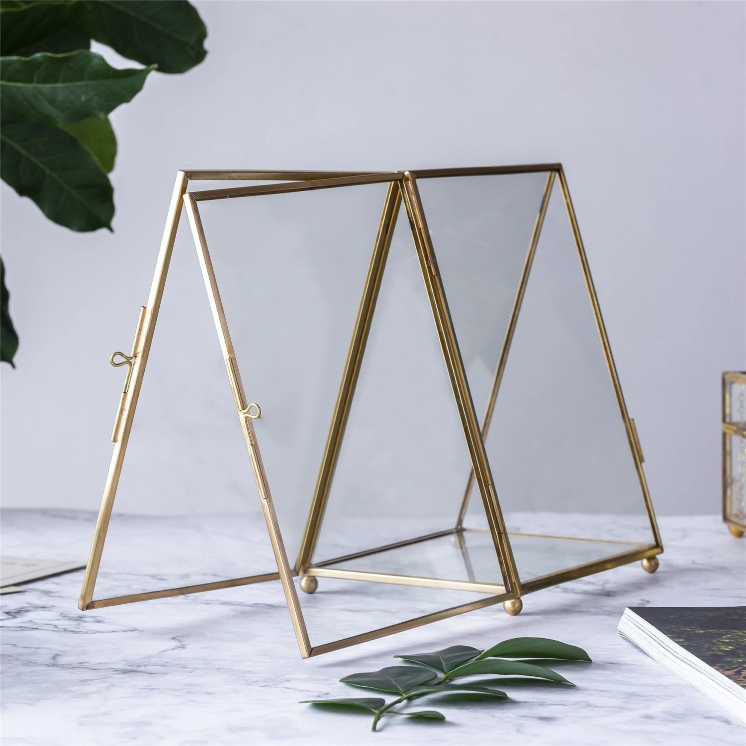 2. Handmade with brass and double glass panels. There is a latch on the side that opens/closes easily.