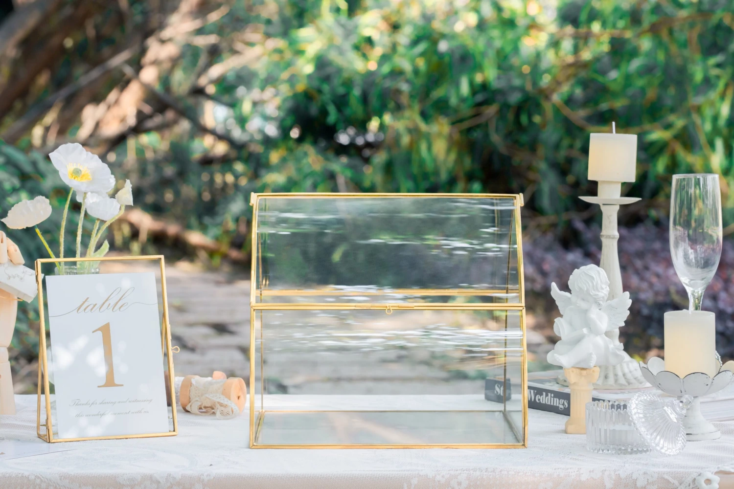 2. This vintage style has a curved glass top, perfect for card collection or wish-wear on a reception table.