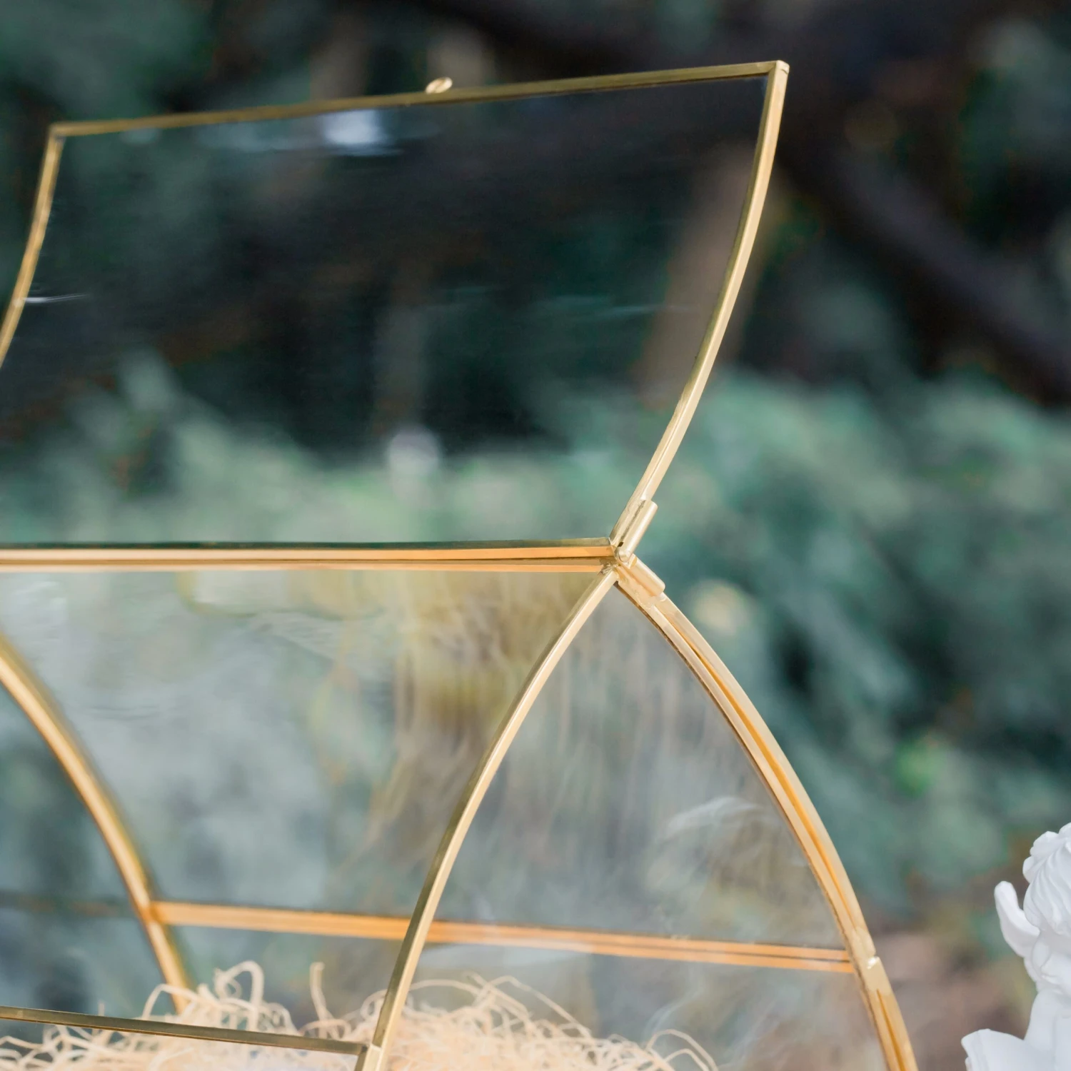 1. This is a simple arched top handmade geometric glass terrarium, an elegant gold wedding card box that is great for wedding/baby shower / bridal showers/ anniversaries/birthday/party donations.