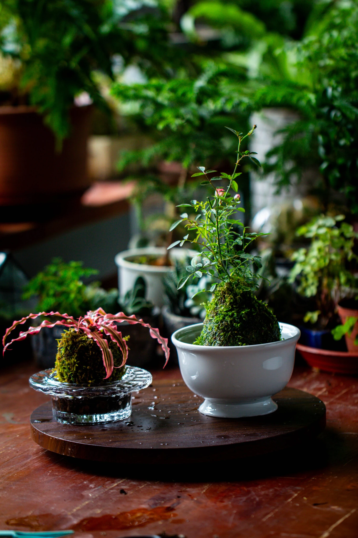 Those kokedama are made with Hypnum plumaeforme Wils. Moss. They are dry but live. The kokedama moss ball will regreen.
