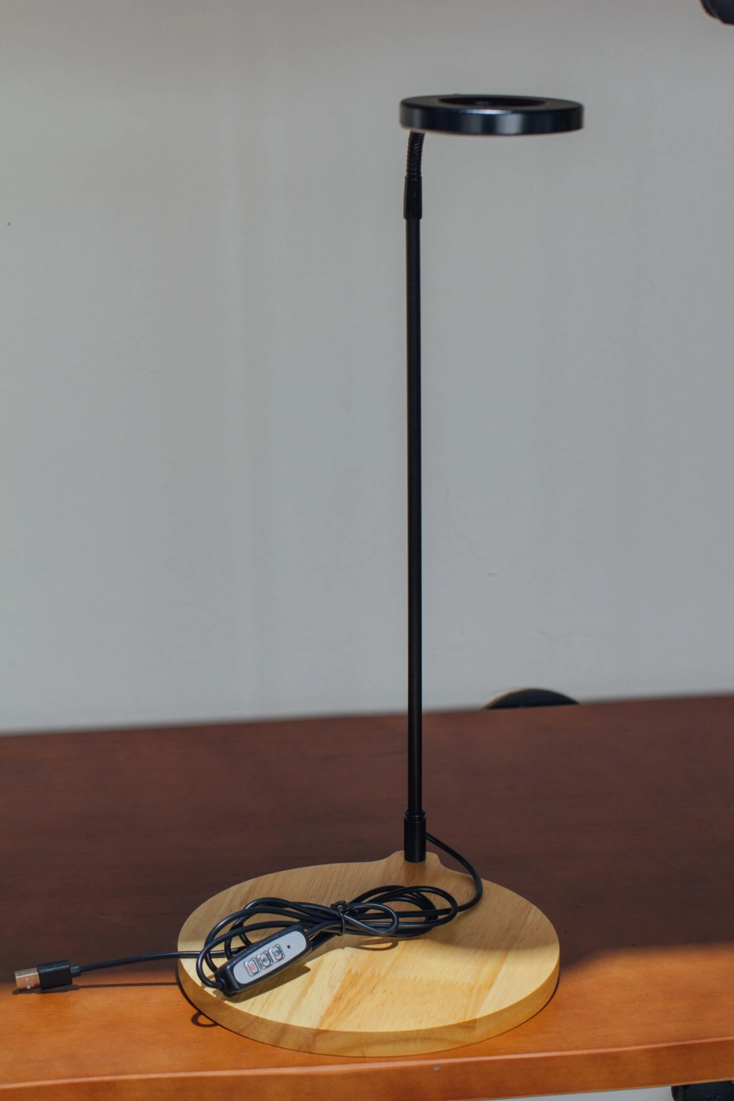The gooseneck is adjustable. The USB plug is universally compatible. You can use it with any USB charger, hub (not included) with ≥ 2A output.