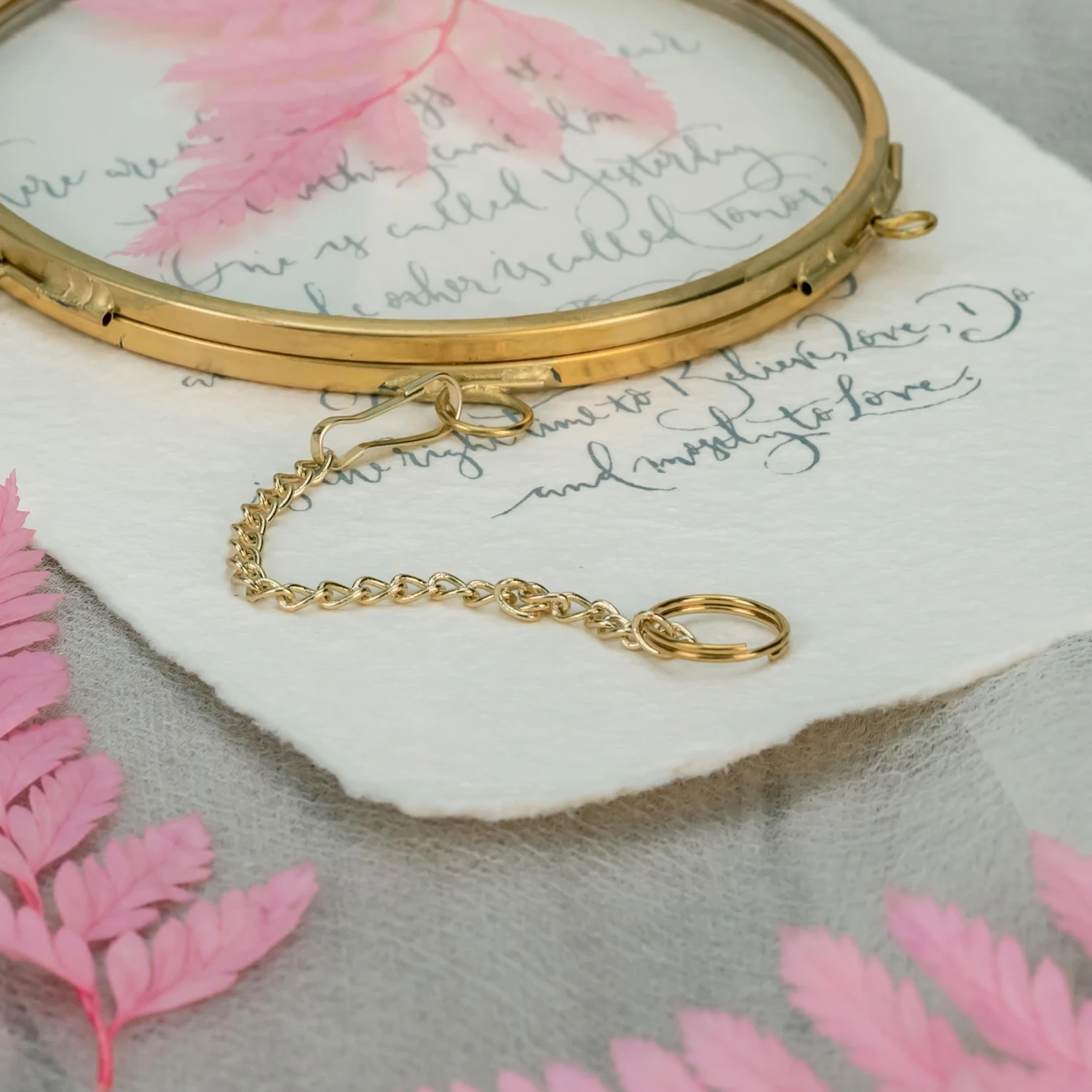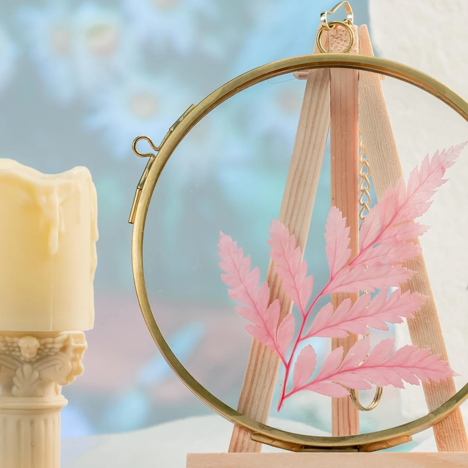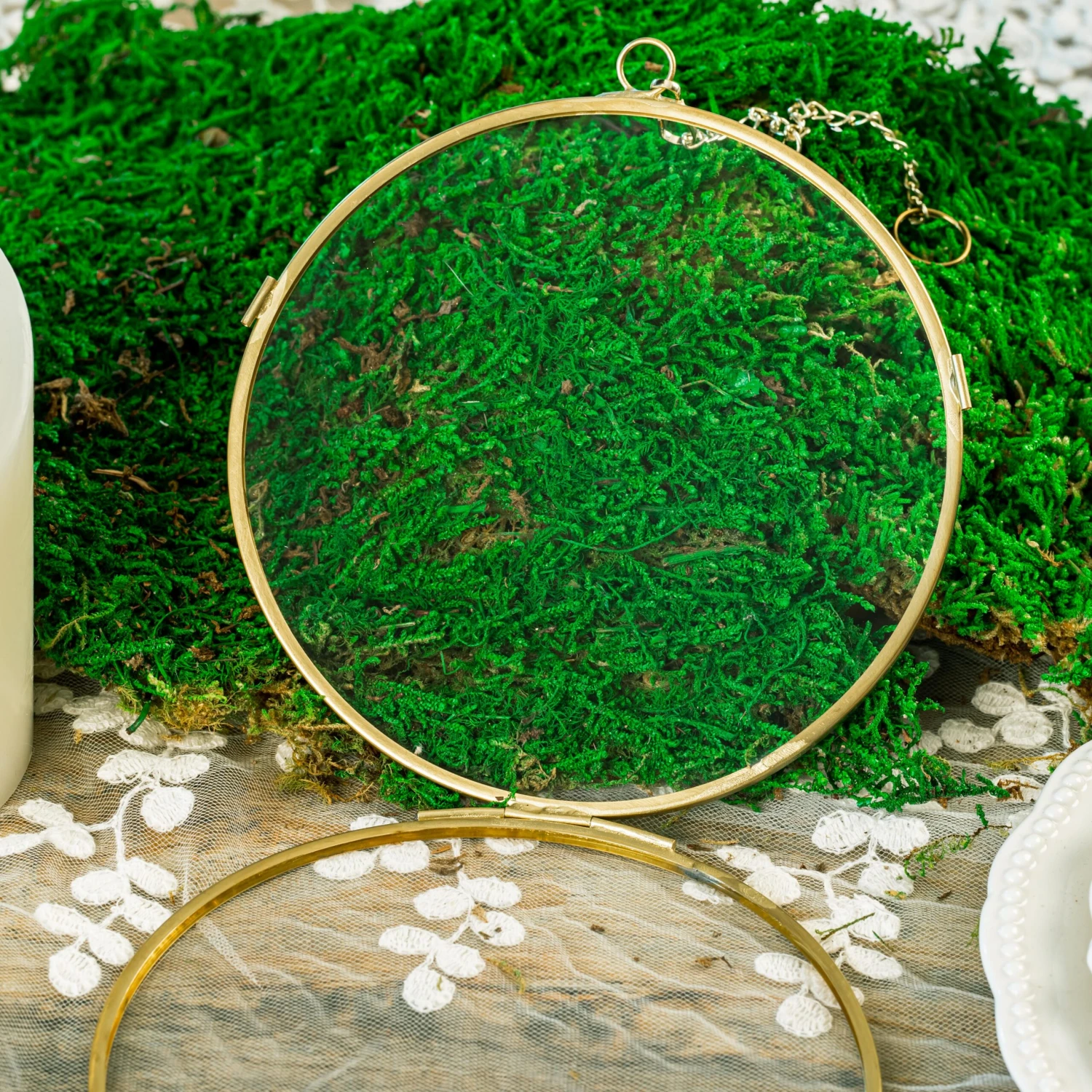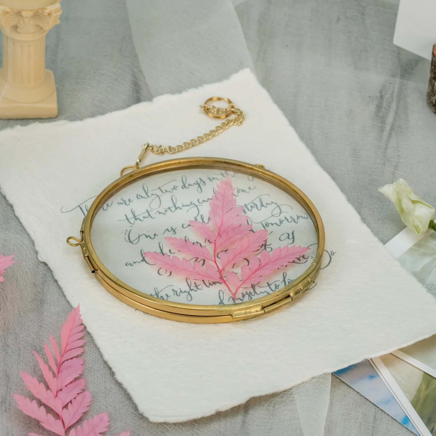2. Handmade round double glass brass and glass frame with a natural vintage gold color, go well with pressed flowers and plants.