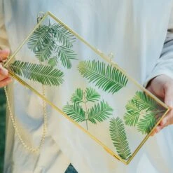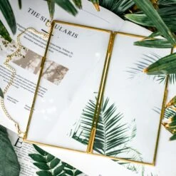 NCYP Vintage Gold Brass Floating Hanging Glass Long Hexagon Photo Frame For Fern, Pressed Flower