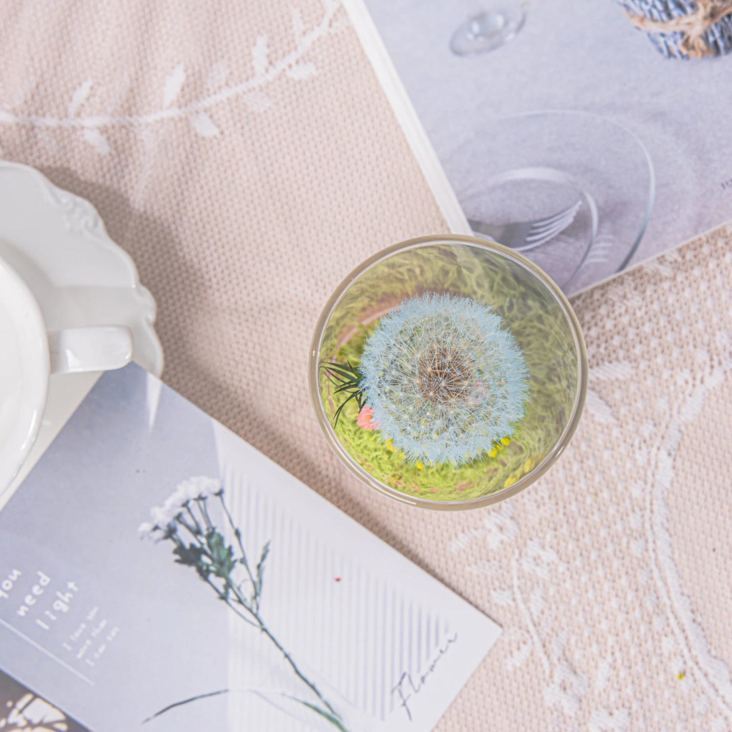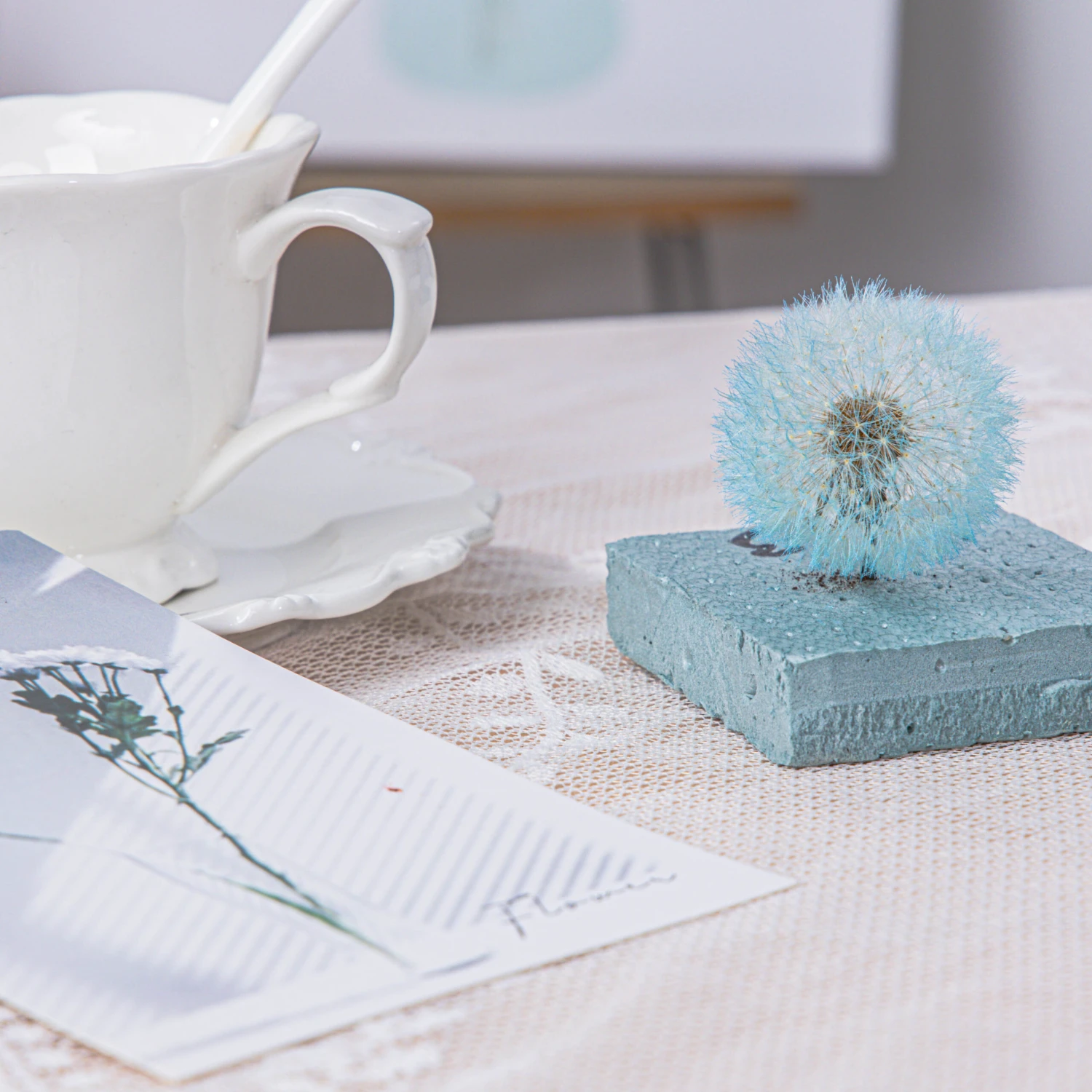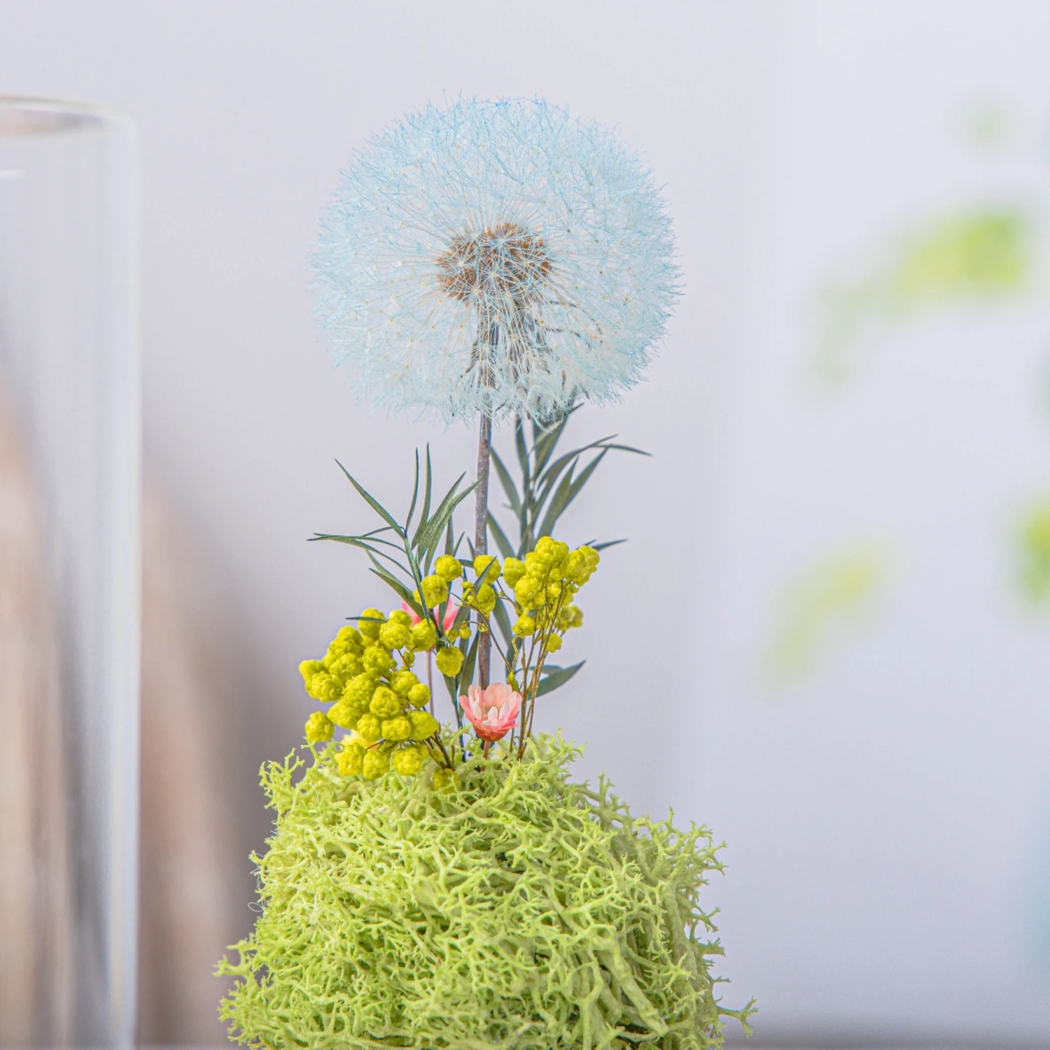 Preserved Dandelion, three pcs, dyed blue.