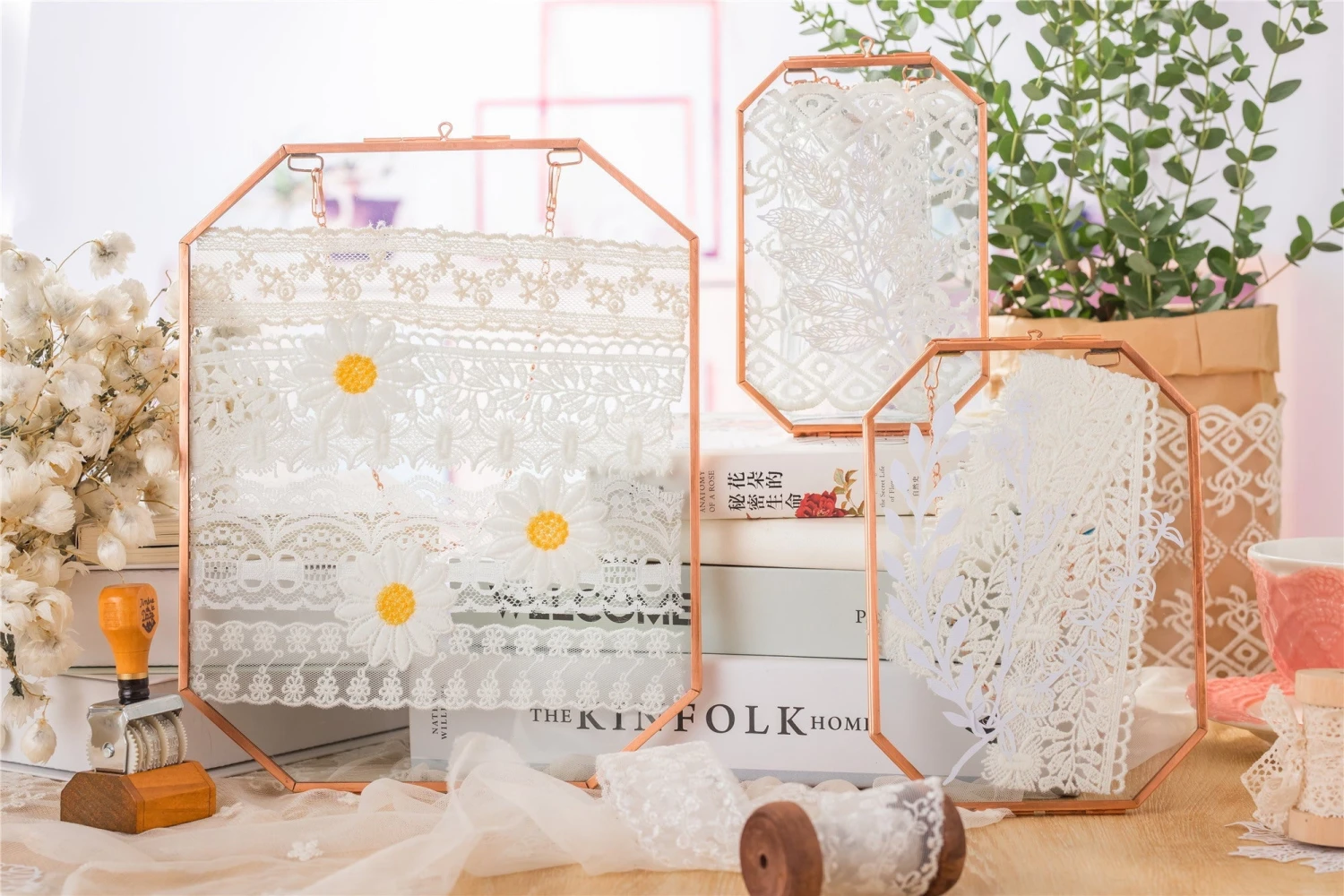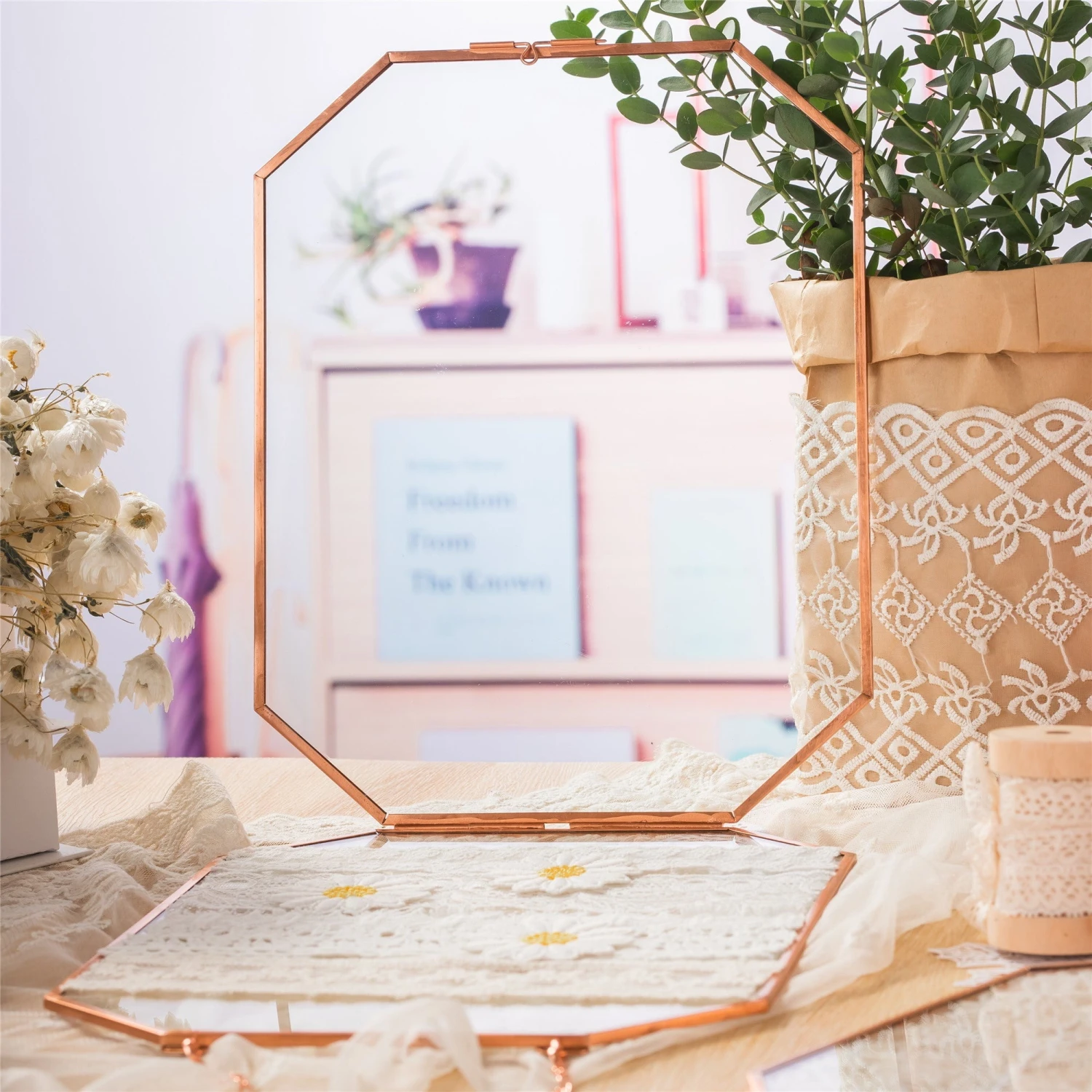 1. Handmade long octagon double glass pure copper and glass frame with a natural vintage rose gold color, go well with pressed flowers and plants.
