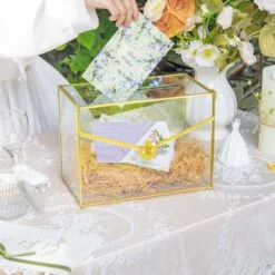 Handmade Envelope Shape Geometric Glass Wedding Card Box Terrarium With Slot, Heart Lock Key