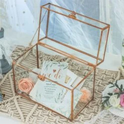Pure Copper Medium Geometric Glass Card Box Terrarium Foot Latch Rose Gold Handmade Rectangular